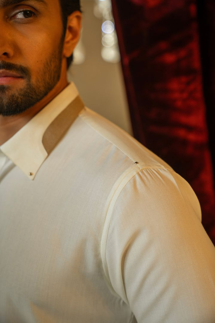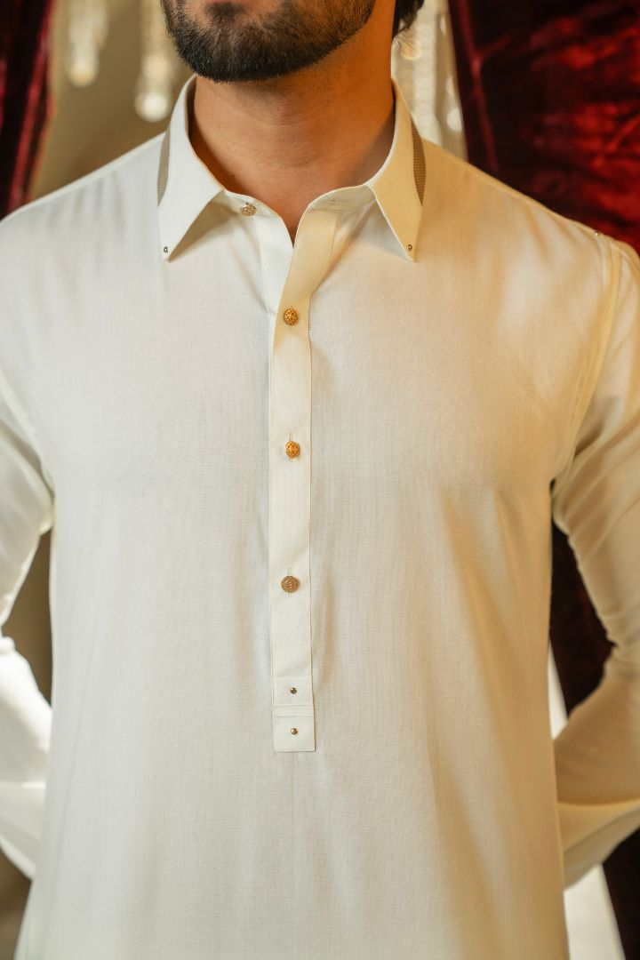 Product description: Kurta with light design details on Collar, Cuff & Shoulders.